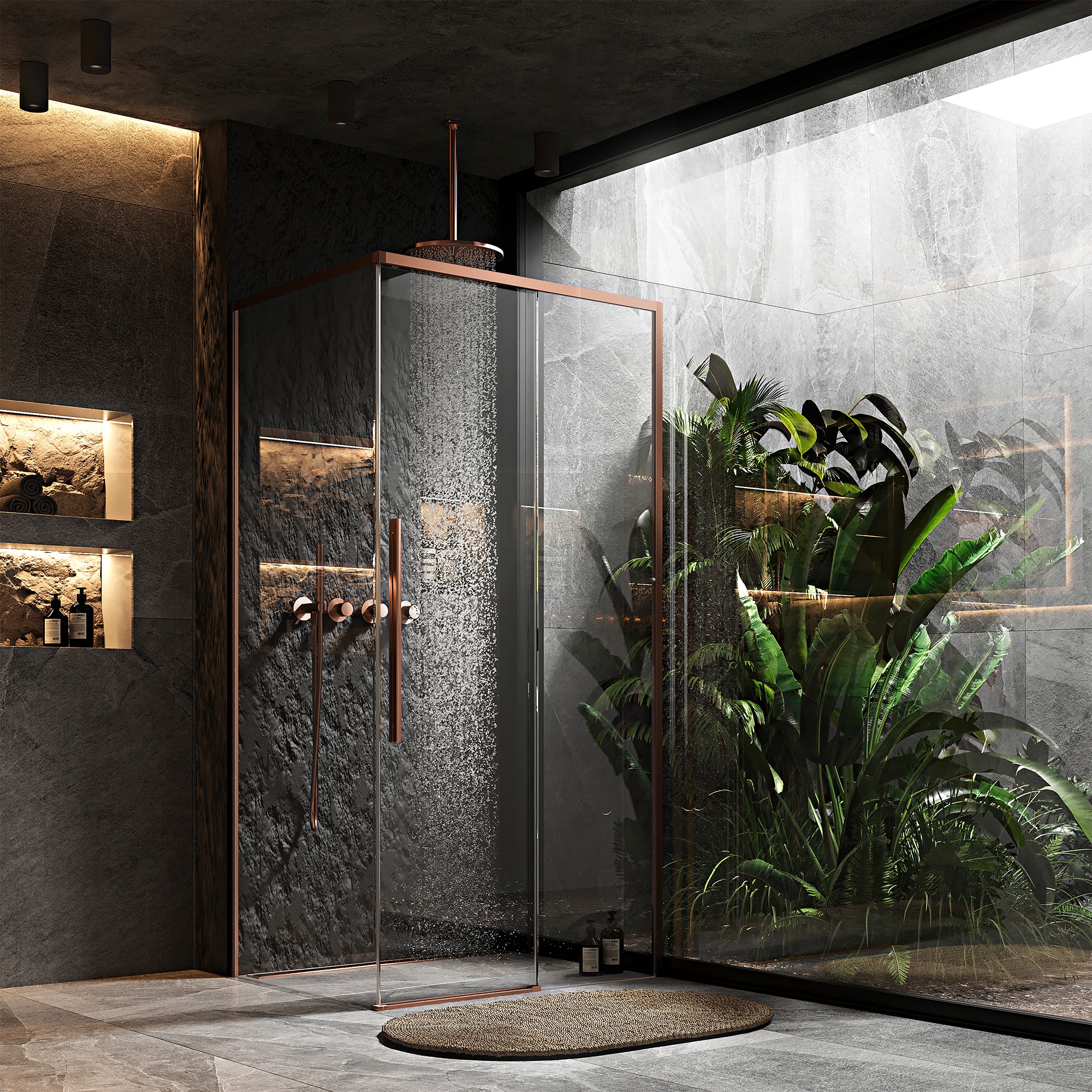 Cabina De Dus SOLAR Copper Brush 100x80cm Cu Cadita Savoy Black