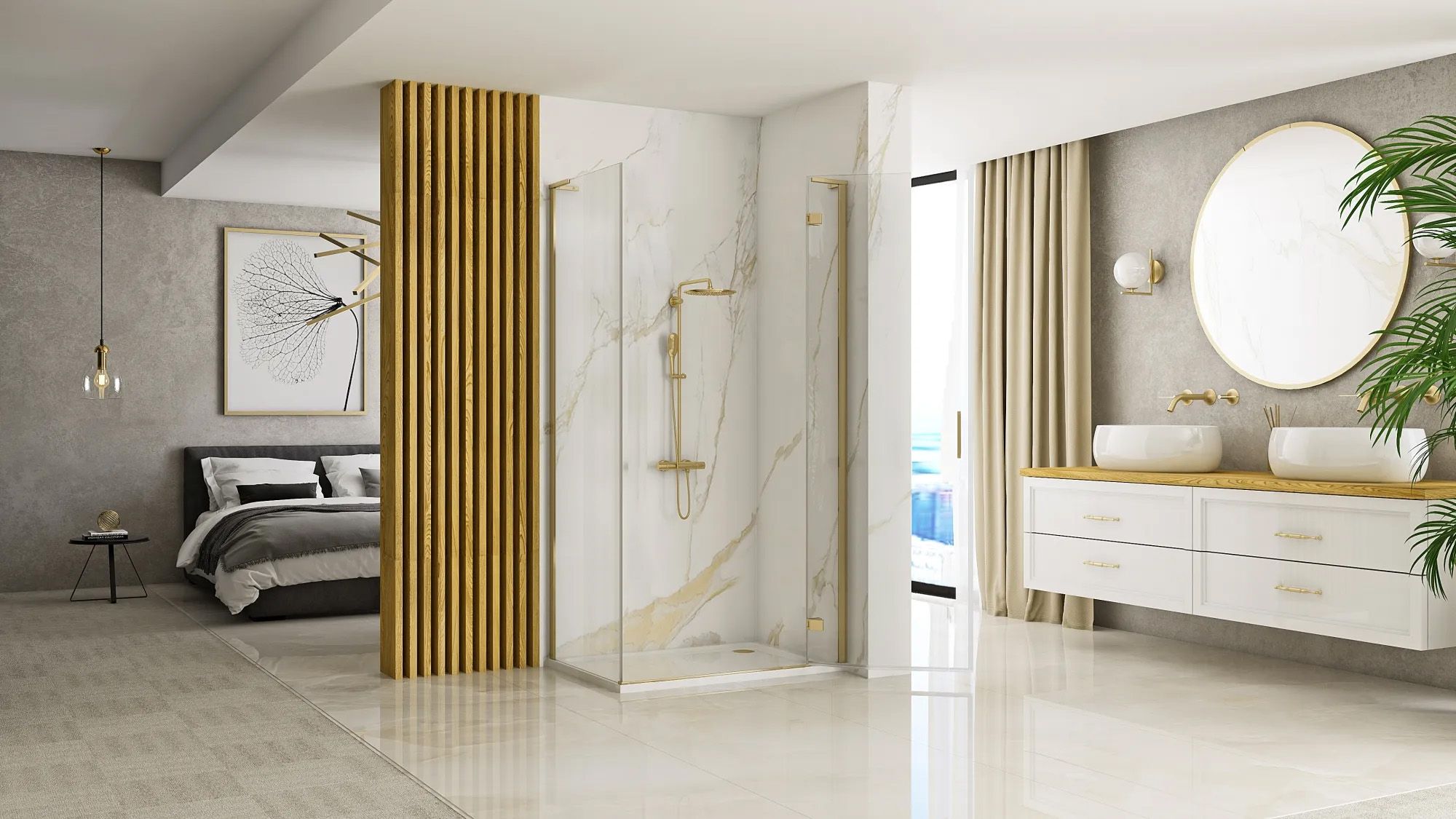 Cabina Dus REA Hugo 100x90 Gold Brush