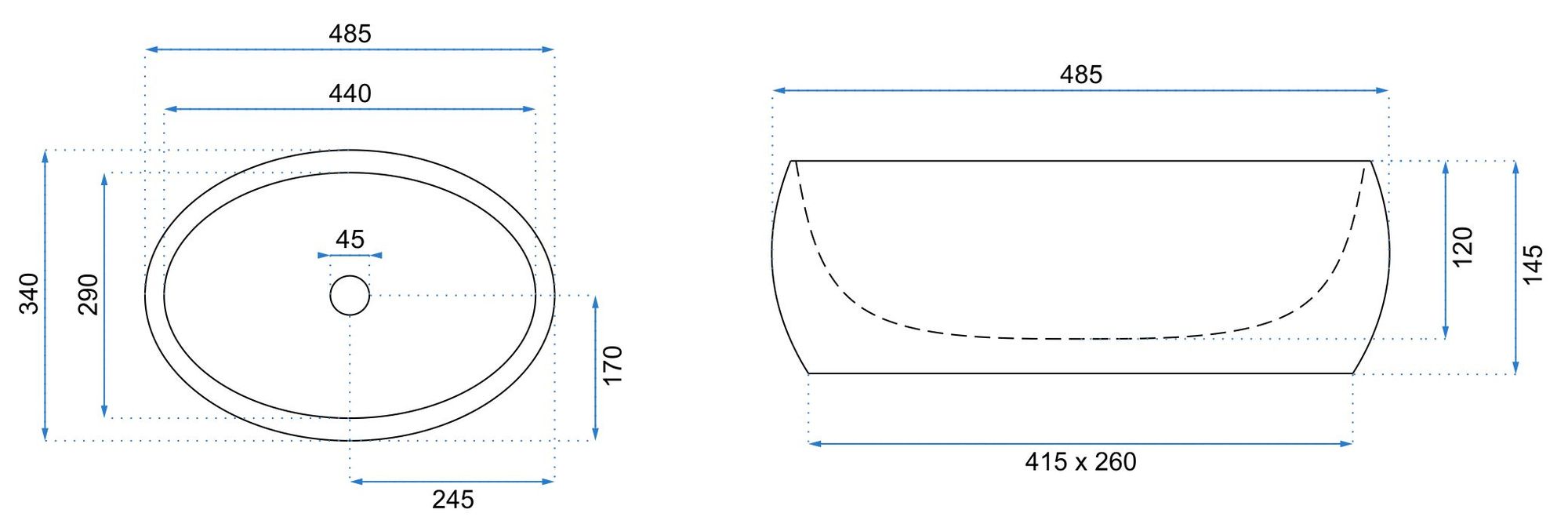 - Lungimea lavoarului - gama: 450-499 mm