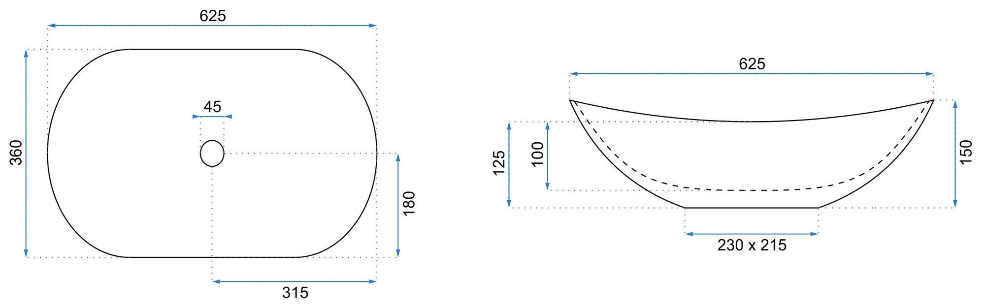 - Lungimea lavoarului - gama: 600+ mm
