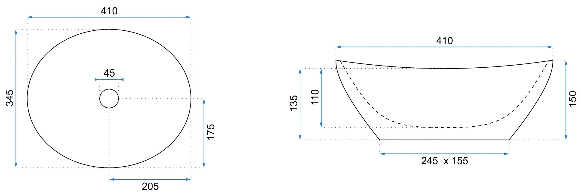 - Distanta intre orificii in bideu: 45