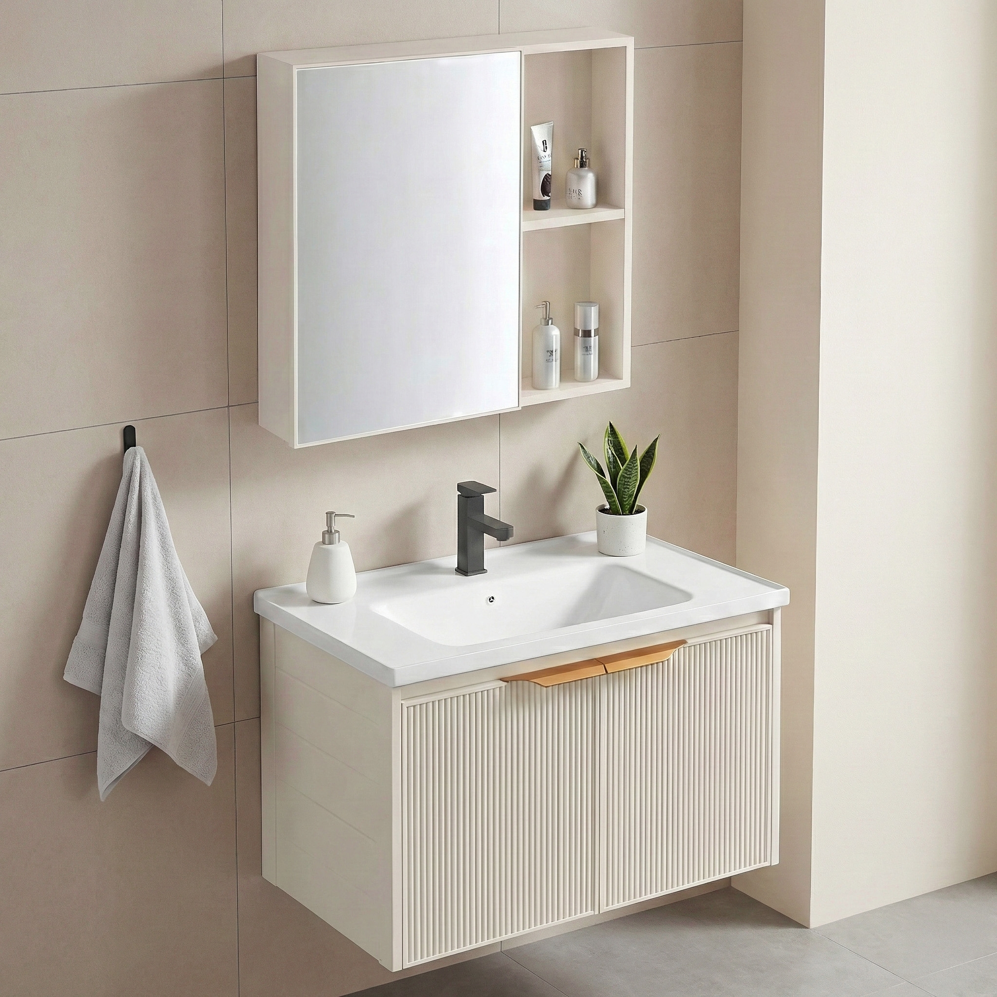 Set Mobilier De Baie Cu Lavoar Mario 60cm Beige