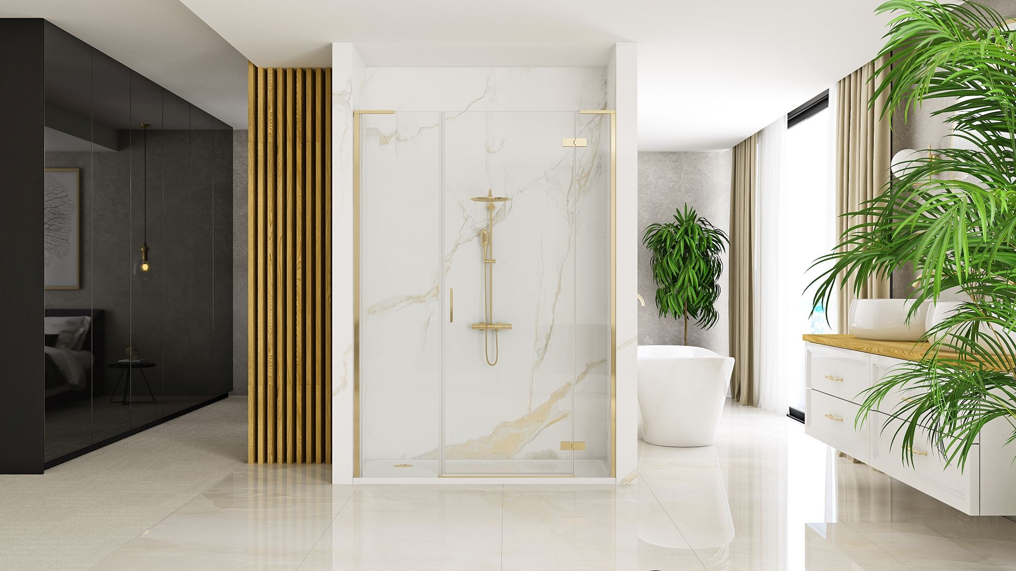 Ușă de duș Rea Hugo 90 Gold Brush + Panou de duș 30
